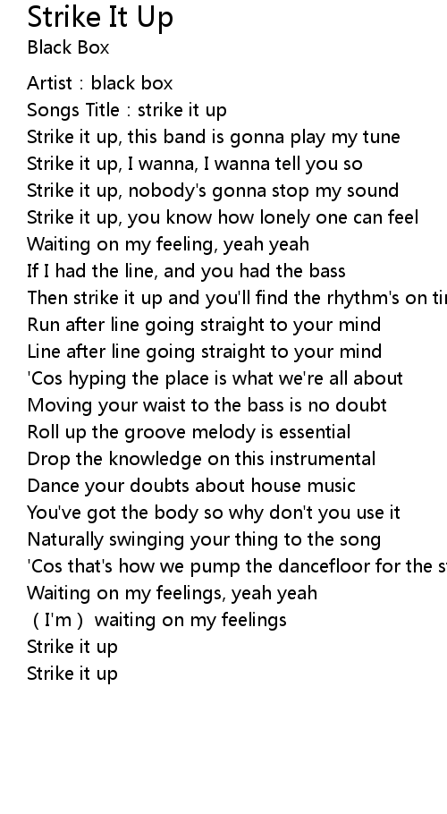 | Songs Title: strike it up | |