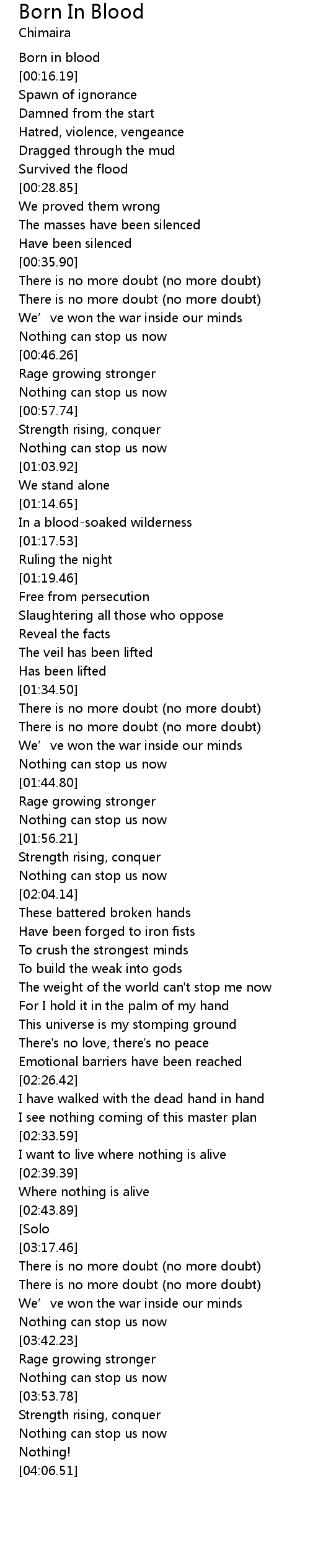 | [00:14.50] | Born in blood |