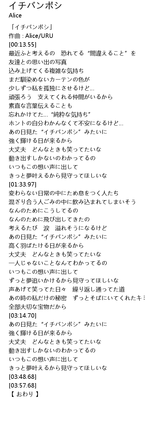 | [01:03.63] | あの日見た“イチバンボシ”みたいに |