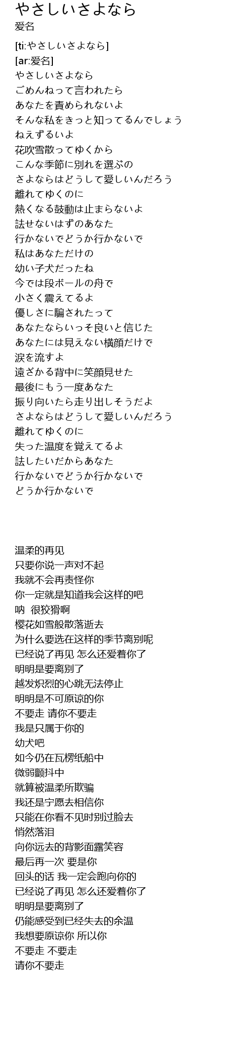 | [ti:やさしいさよなら] | |