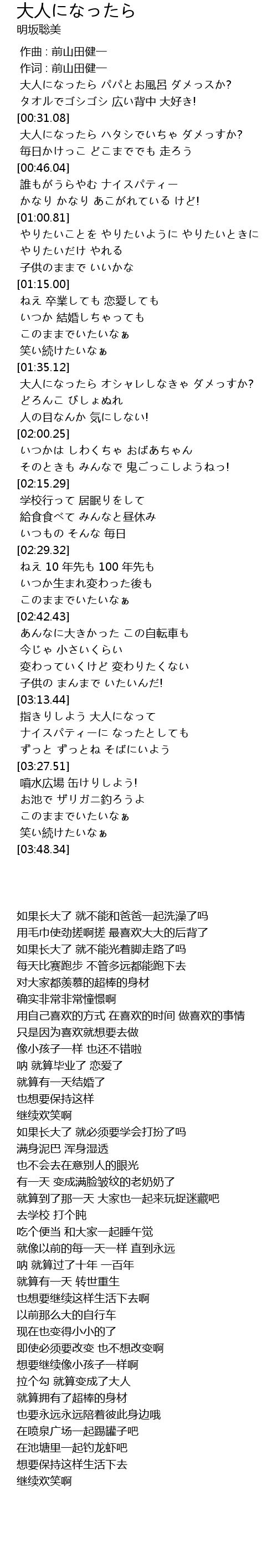 | [00:31.09] | 大人になったら ハタシでいちゃ ダメっすか? |