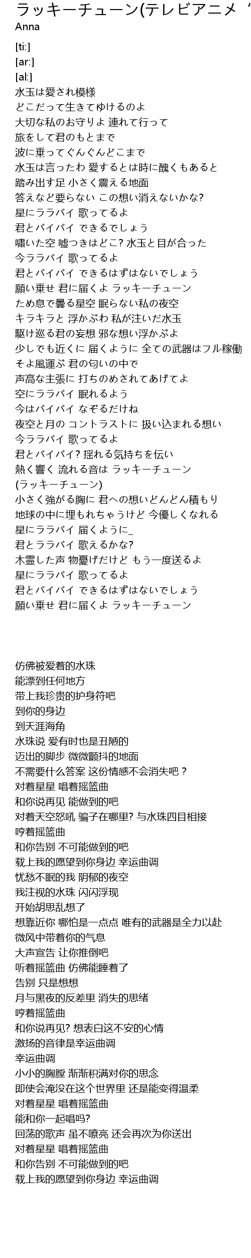 | [03:41.73] | 願い乗せ 君に届くよ ラッキーチューン |
