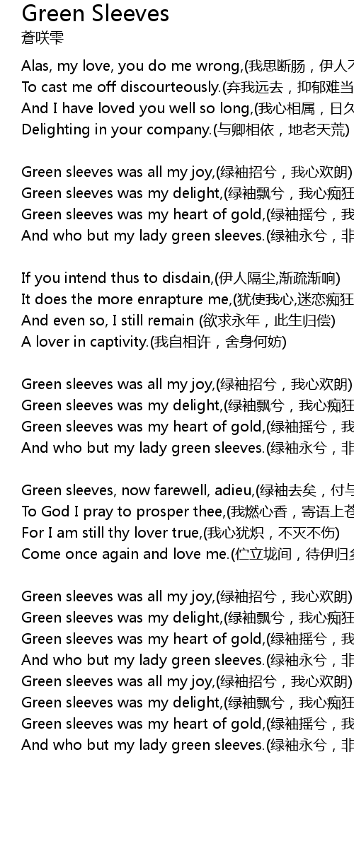 | And who but my lady green sleeves. lǜ xiù yǒng xī, fēi wǒ xīn niáng | |