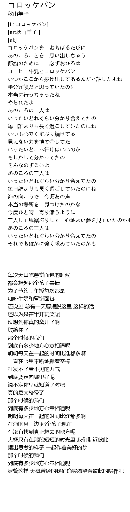 | [00:08.54] | コロッケパンを おもばるたびに |