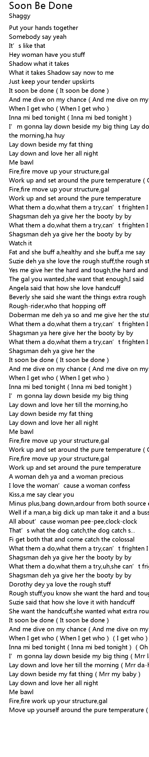 | [01:10.27] | Shagsman deh ya give her the booty by by |