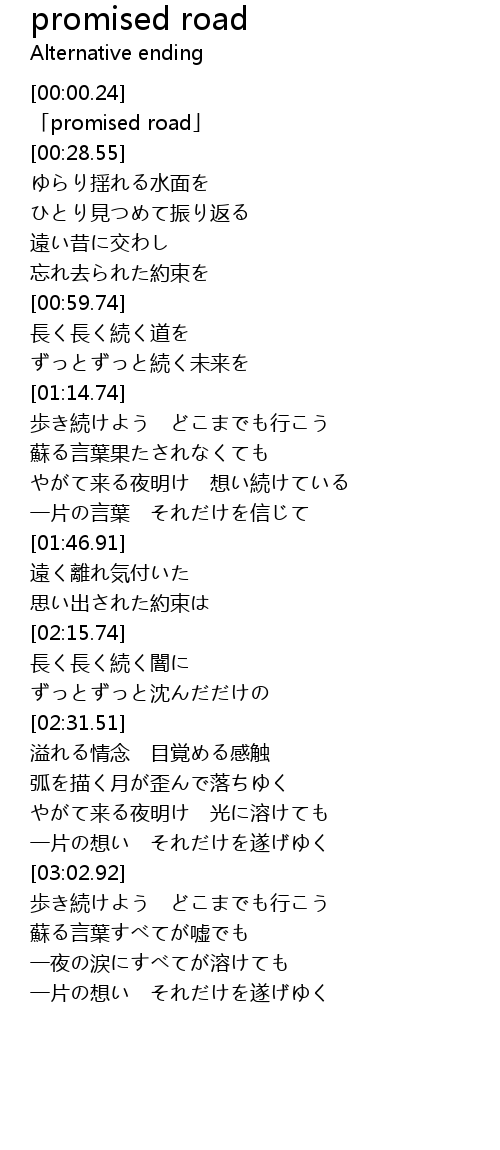| [00:15.20] | 「promised road」 |