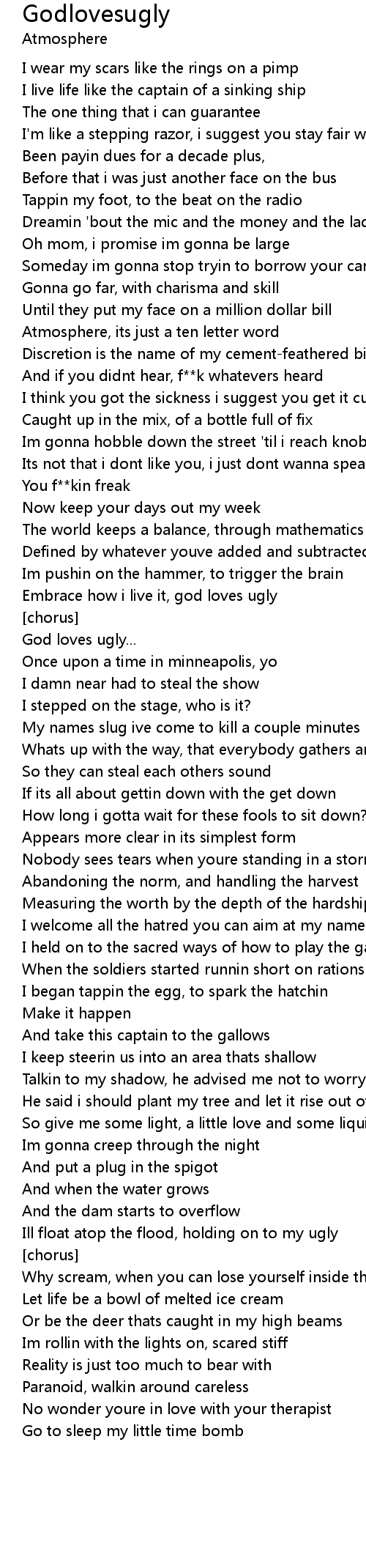 Embrace how i live it, god loves ugly |