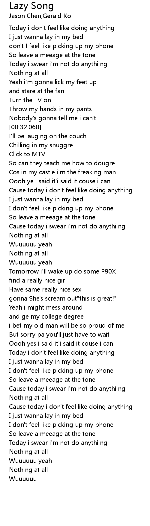 Cause today i don't feel like doing anything |