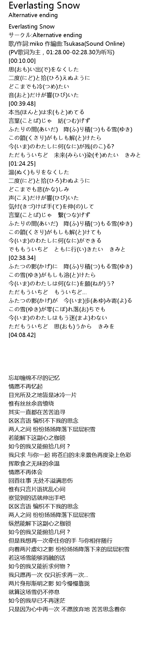 | [00:01.00] | Everlasting Snow |