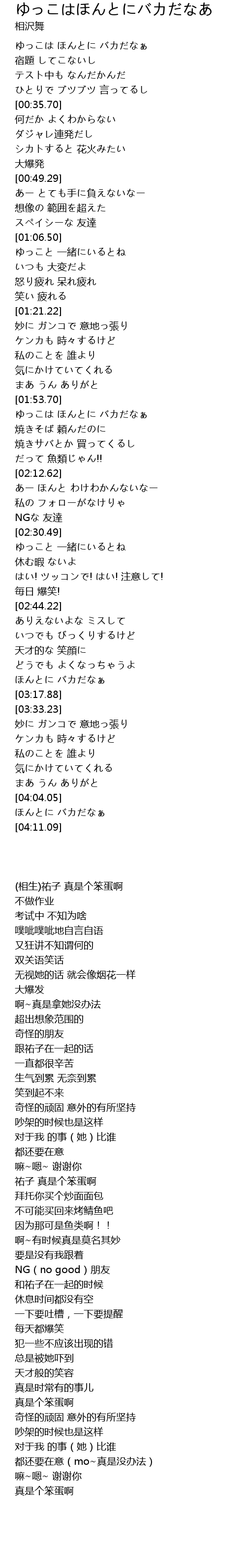 | 歌曲 | ゆっこはほんとにバカだなあ |