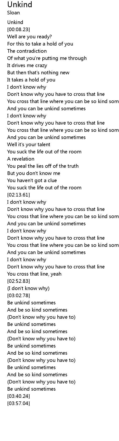 [03:08.17] Be unkind sometimes