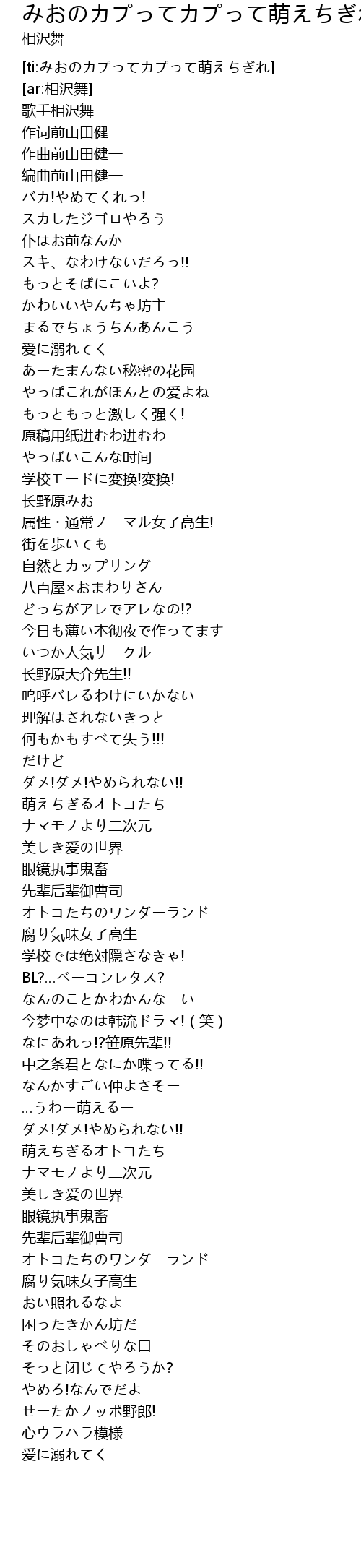 | [ti:みおのカプってカプって萌えちぎれ] | |