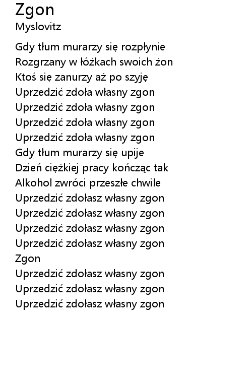 | [02:06.37] | Uprzedzi zdo asz w asny zgon |