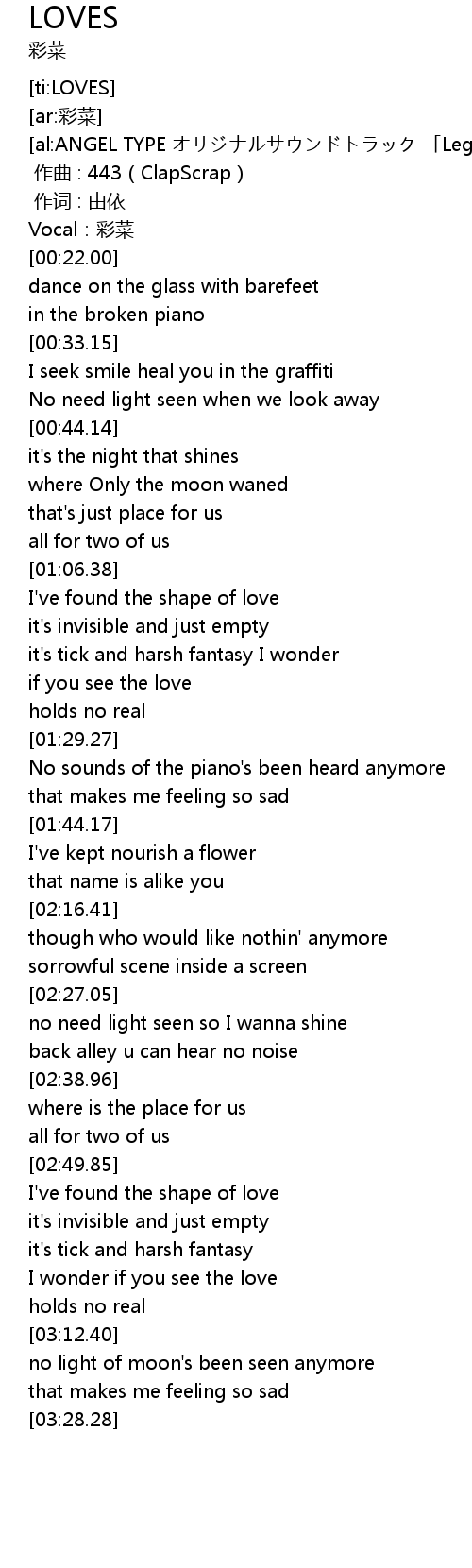 | [00:33.50] | I seek smile heal you in the graffiti |