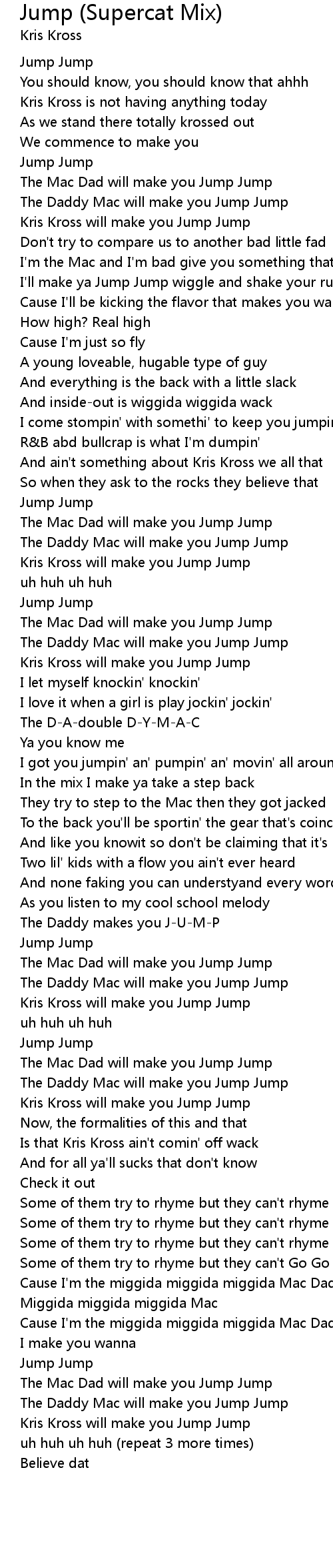 And ain't something about Kris Kross we all that |