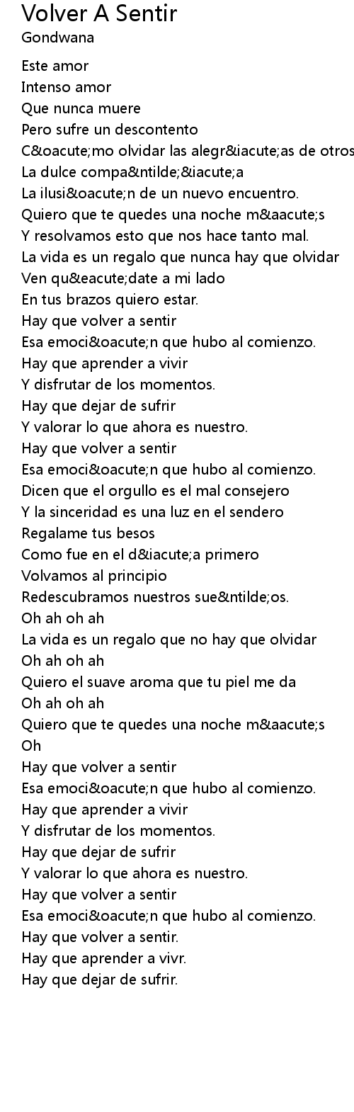 Volver A Sentir 歌词