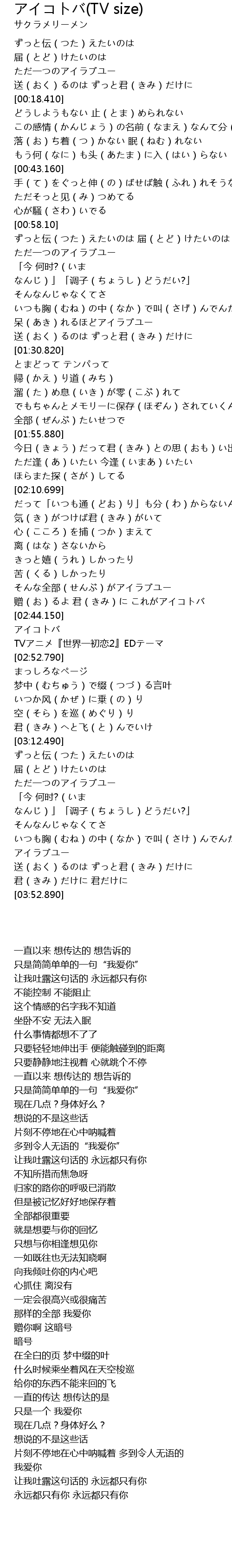 | [02:34.860] | 赠(お)るよ 君(きみ)に これがアイコトバ |