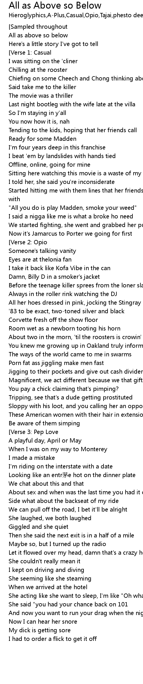 | [02:53.728] | She acting like she want to sleep, I'm like "Oh what the hell" |