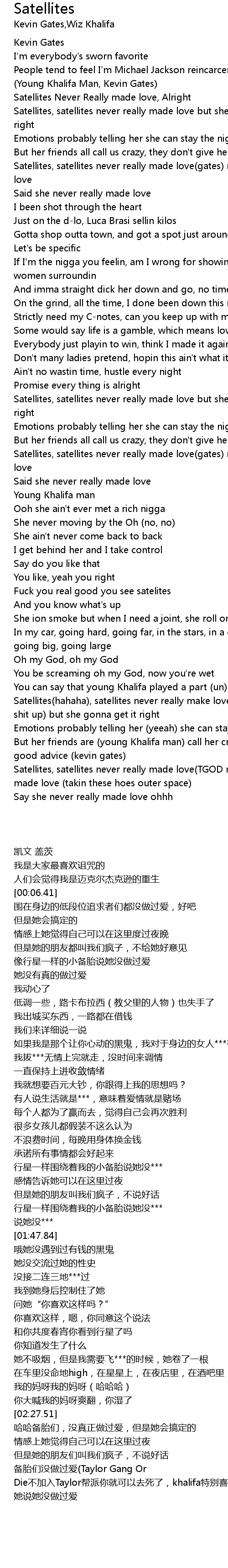 [02:30.16] Satellites(hahaha), satellites never really make love(nah mop that shit up) but she gonna get it right