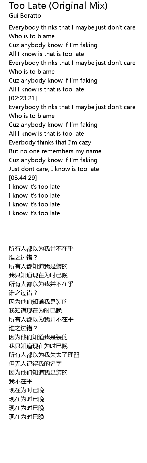I know it's too late |