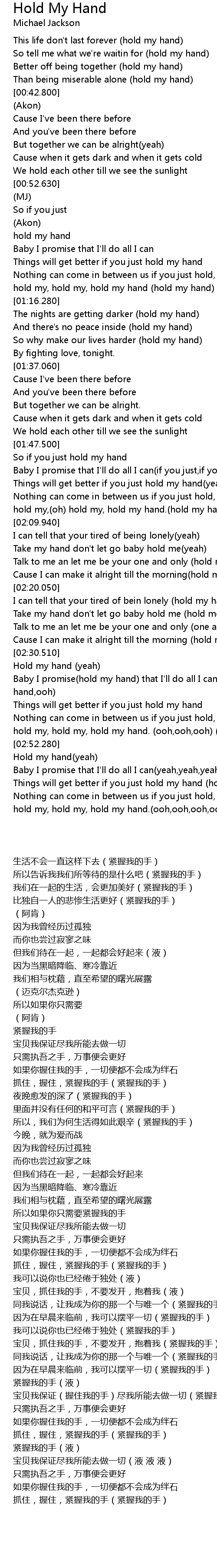 hold my, hold my, hold my hand. (ooh,ooh,ooh) (hold my hand) |