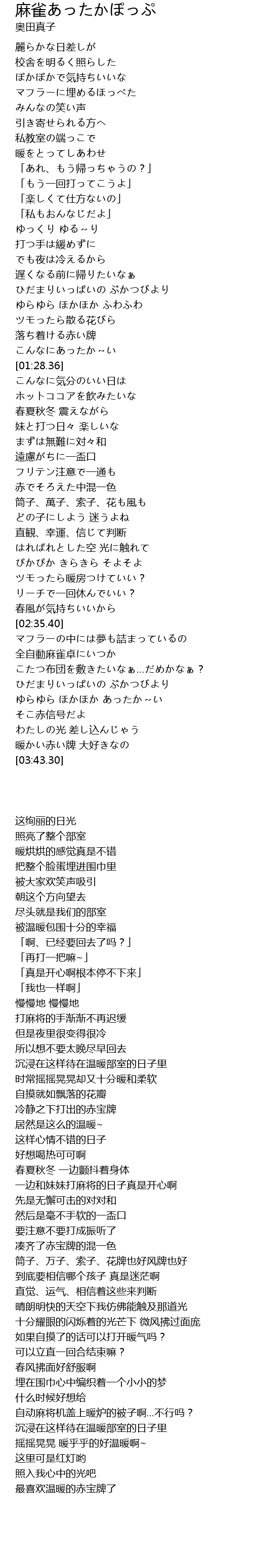 | [02:24.32] | 如果自摸了的话可以打开暖气吗? |
