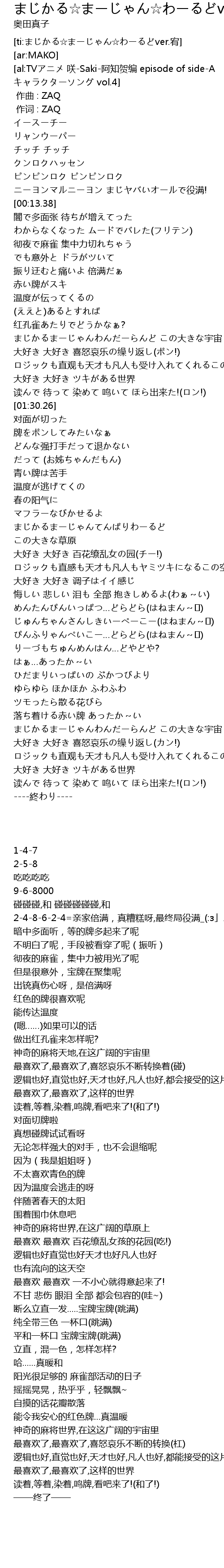 | [ti:まじかる☆まーじゃん☆わーるどver.宥] | |