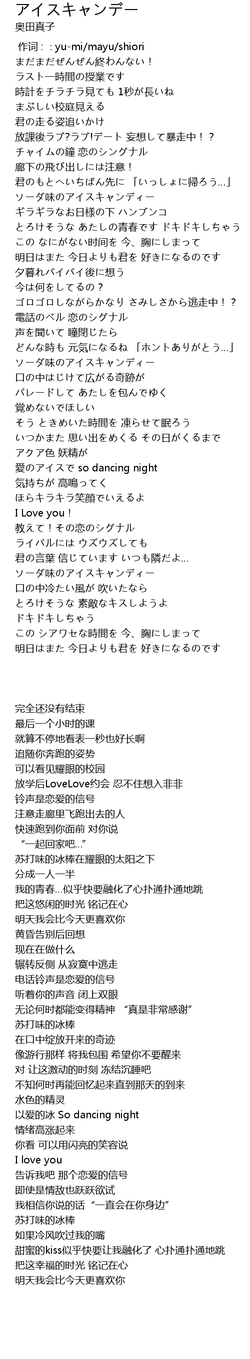 | [00:38.21] | チャイムの鐘 恋のシングナル |
