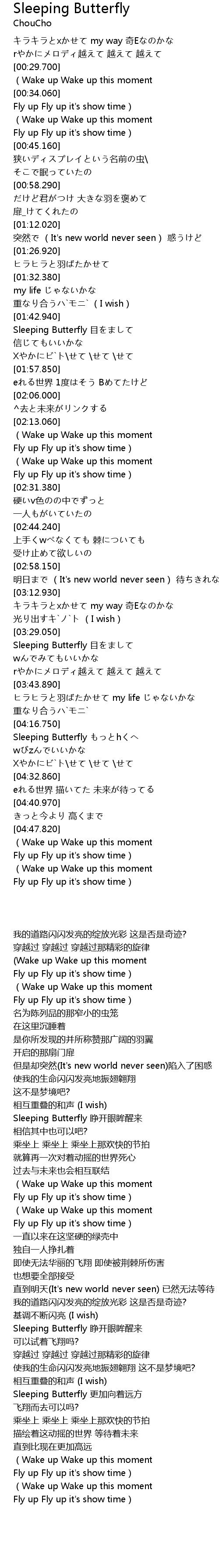 | [03:29.740] | Sleeping Butterfly 睁开眼眸醒来 |