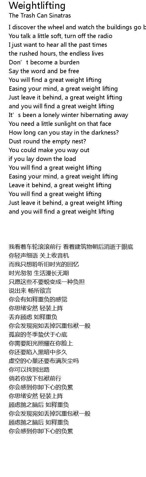| [01:10.54] | Just leave it behind, a great weight lifting |
