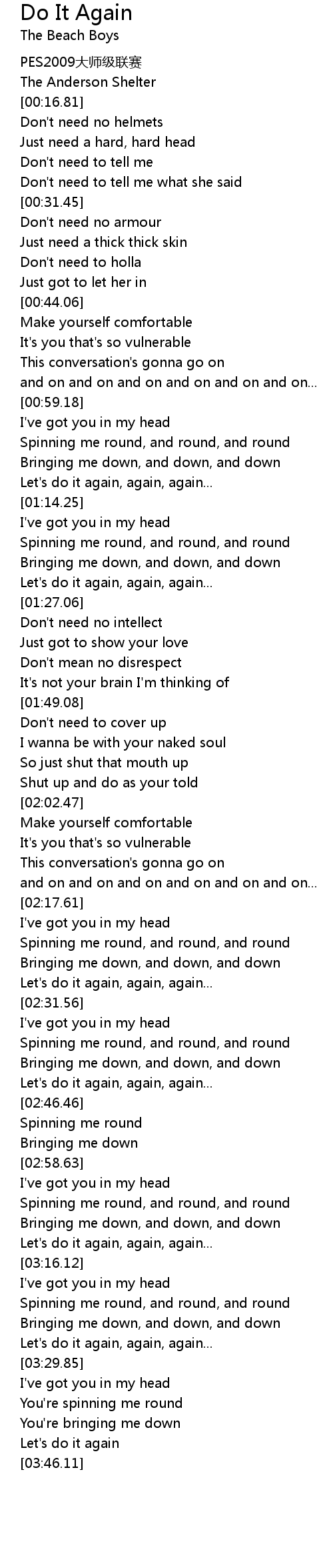 | [02:29.49] | Let's do it again, again, again... |