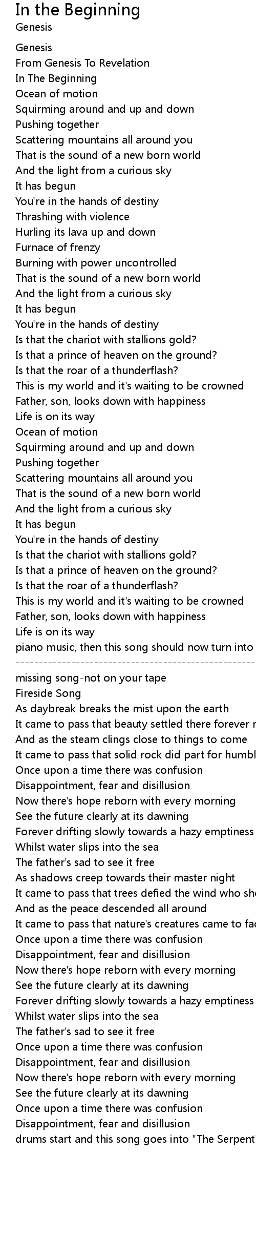 歌曲 In the Beginning