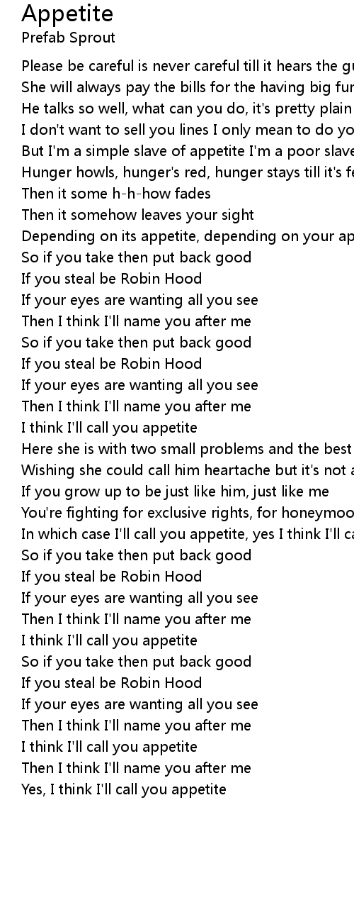 But I'm a simple slave of appetite I'm a poor slave of appetite |