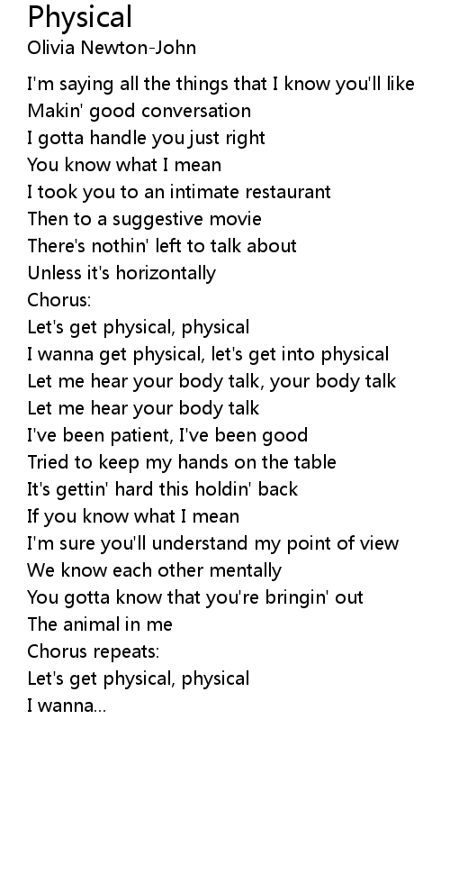 I wanna get physical, let's get into physical |