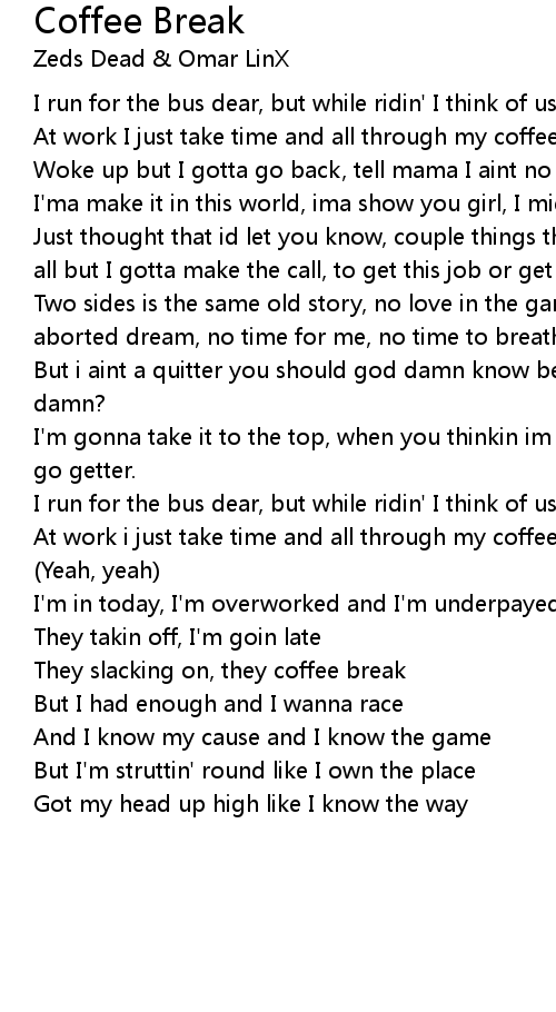 They slacking on, they coffee break |