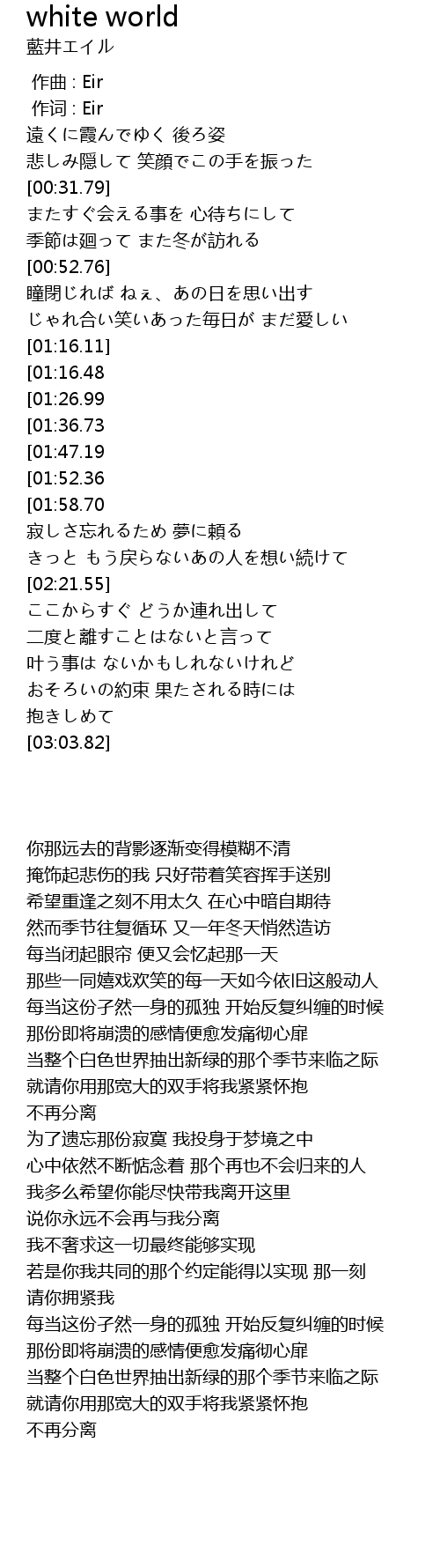 | [00:01.00] | 作词 : Eir |