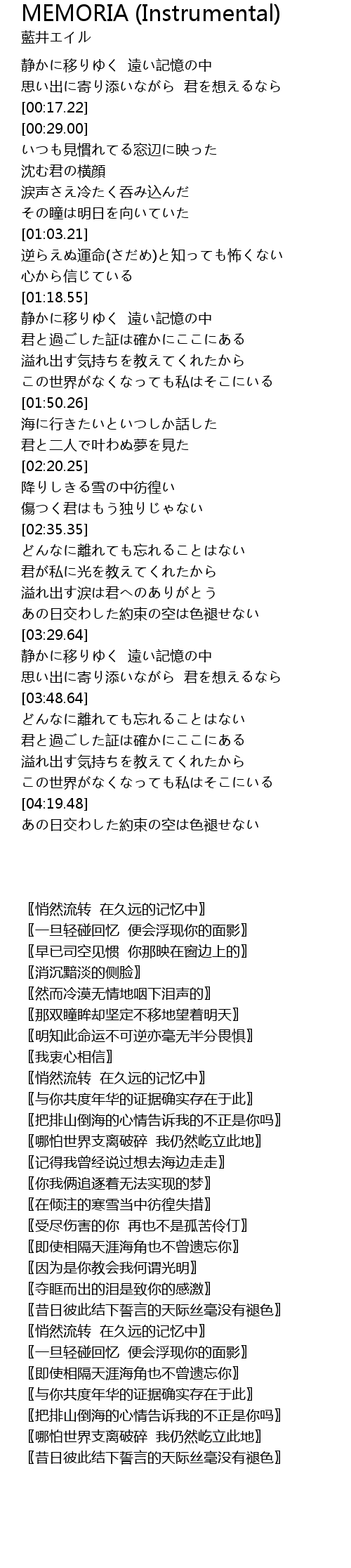 | [01:19.32] | 静かに移りゆく 遠い記憶の中 |