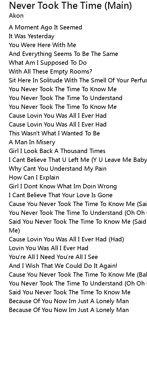 Cause You Never Took The Time To Know Me (Said U Never Took The Time To Know Me) |