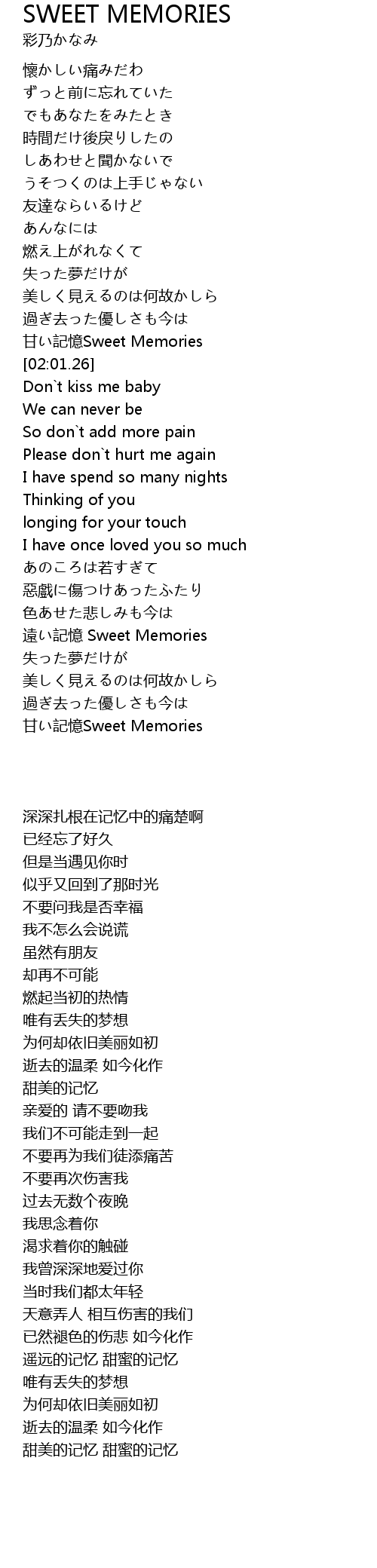 | [01:49.76] | 甘い記憶Sweet Memories |