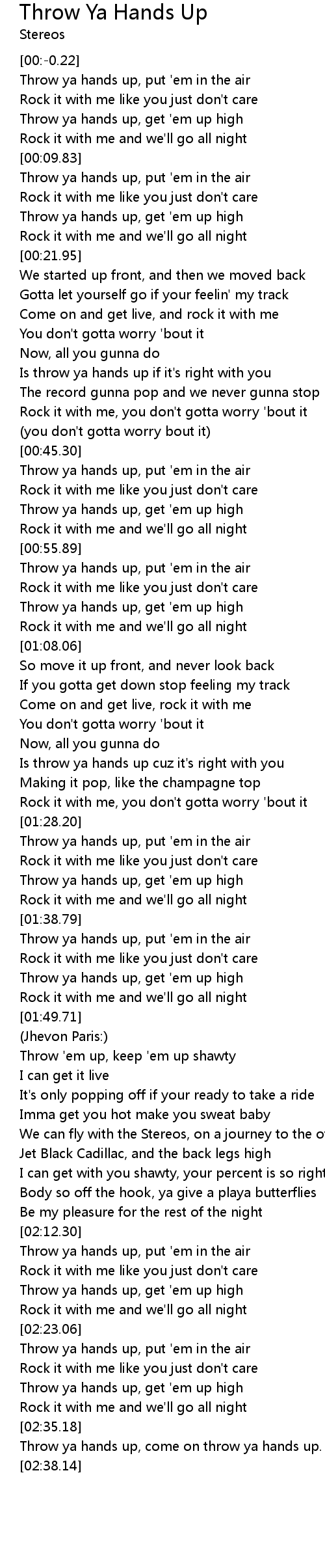 Throw ya hands up, come on throw ya hands up. |