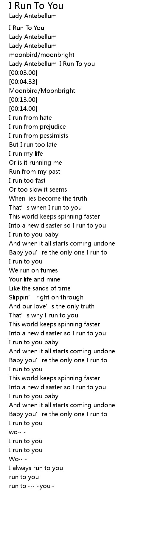 | [00:01.31] | Lady Antebellum-I Run To you |