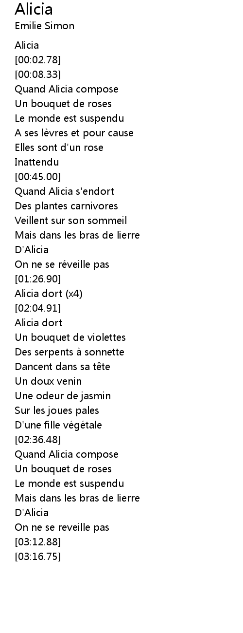 | [00:59.12] | Quand Alicia s'endort |