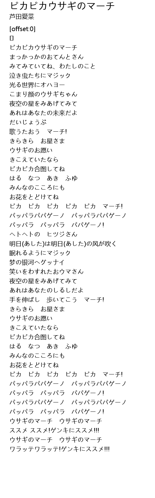 | [02:44.533] | ピカ ピカ ピカ ピカ ピカ マーチ! |