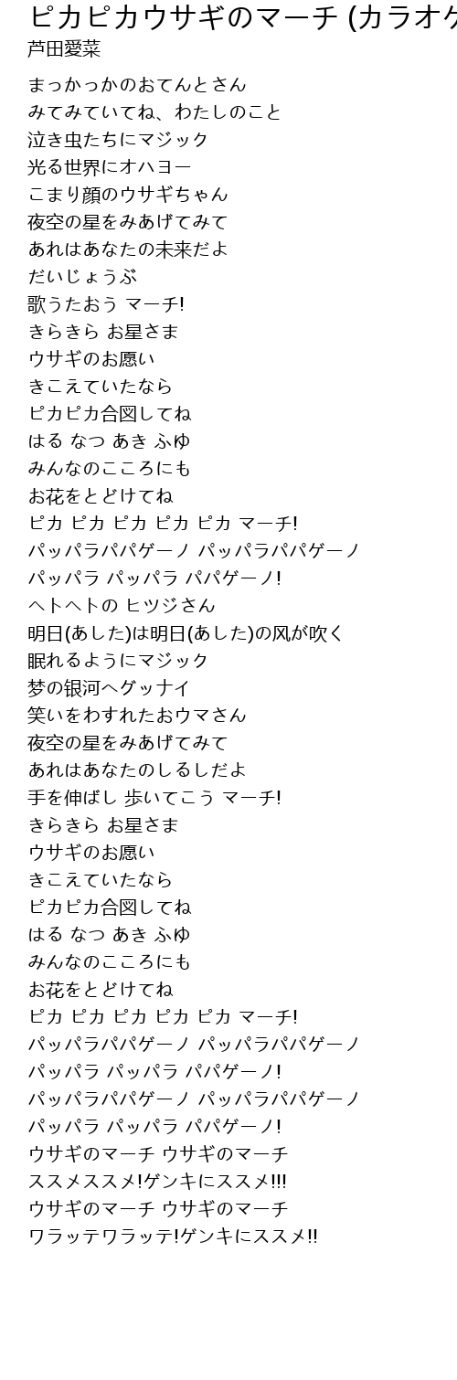| 歌曲 | ピカピカウサギのマーチ (カラオケ) |
