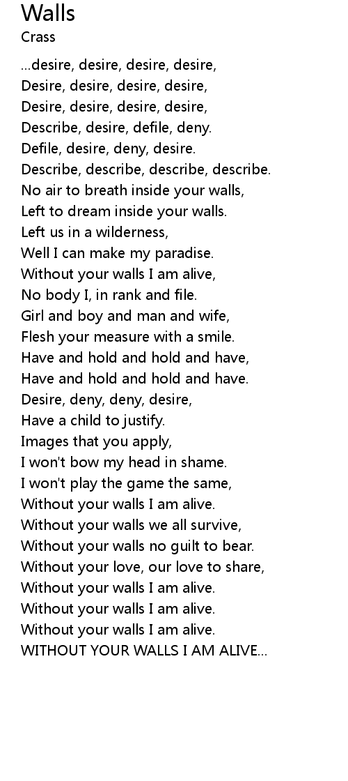 WITHOUT YOUR WALLS I AM ALIVE... |