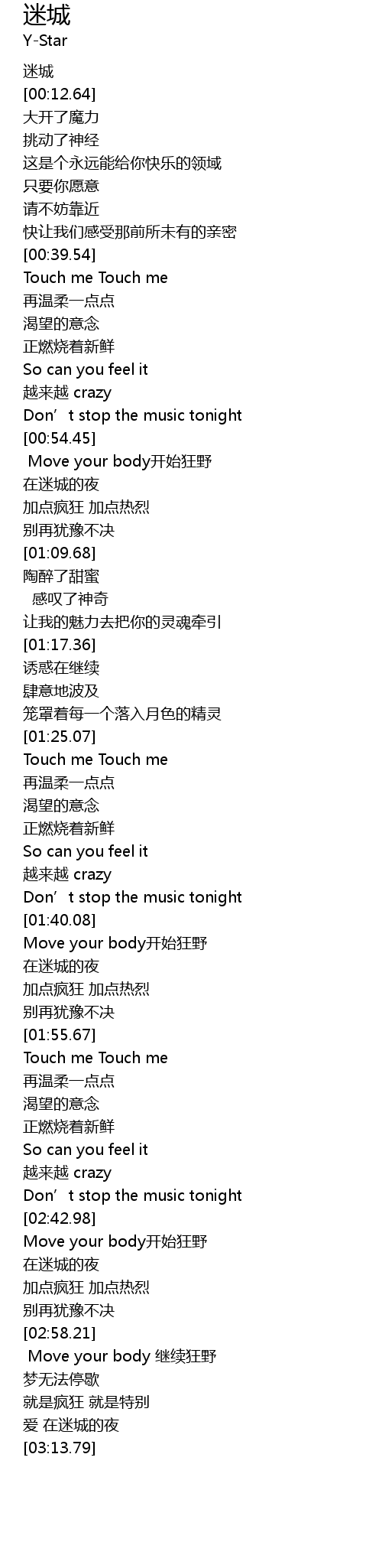 | [00:40.20] | Touch me Touch me |