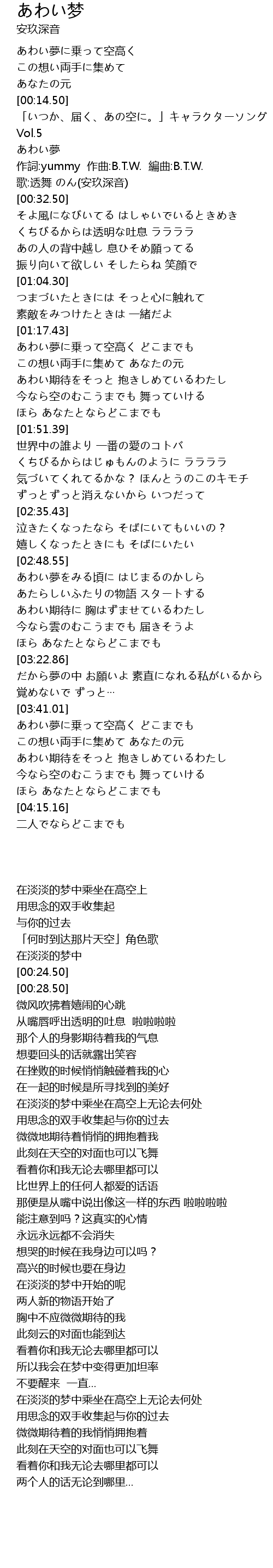 | [00:20.50] | あわい夢 |