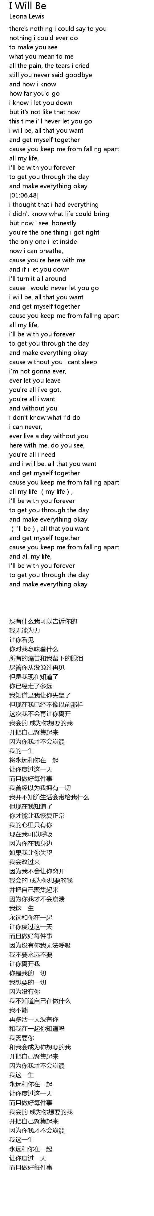 | 歌曲 | I Will Be |