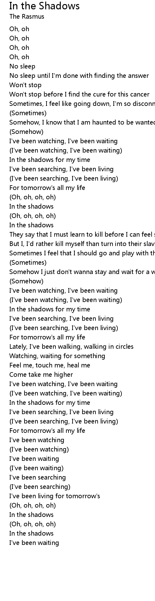 In the shadows for my time |