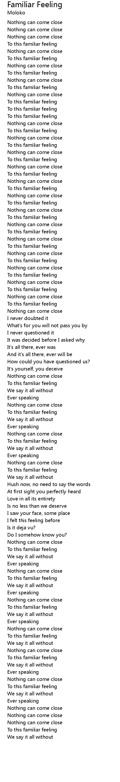 To this familiar feeling |